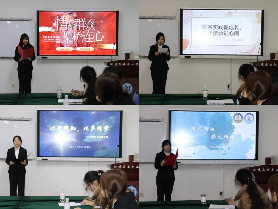 各实践团队代表结合自身实践经历,分享在社会实践中的成长与成果。一是聚焦企业发展、低碳社区建设等主题,深入一线采样访谈,以科学数据为地方生态治理等建言献策。二是立足专业优势,深入社区、政务机关与企业一线,在志愿服务、基层实践、岗位锻炼中锤炼本领、增长才干,以实干担当服务社会、展现青年本色。三是深耕多样公益实践,参与招生宣讲、推普助力乡村振兴,开展敬老帮扶等志愿活动,以青春行动传递温暖,凝聚向善合力、彰显青年担当。
