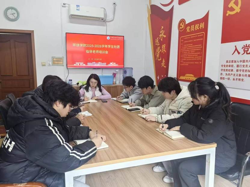 12月24日,环境学院召开2025-2026学年学生社团指导老师培训会,安全行动社、后天环保协会、阳光心理协会、青岛科技大学青年志愿者协会环境学院分会的指导老师和社团负责人参会,学院负责社团工作团干部周玉婷主持会议。