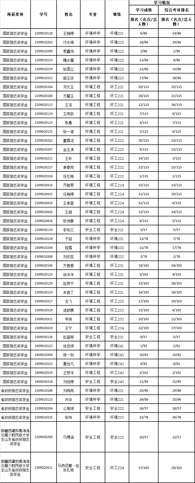 特此公示。公示时间为2个工作日,如有异议,请实名向环境学院学工办反映。