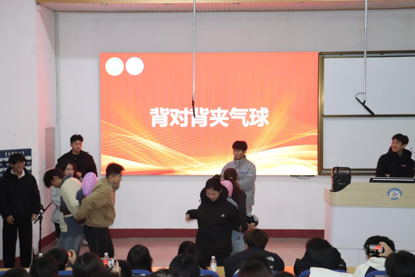 “背对背传气球”比拼中,同学们相互配合,传递气球,现场氛围热烈欢乐,展现出宿舍同学间的团队协作精神。